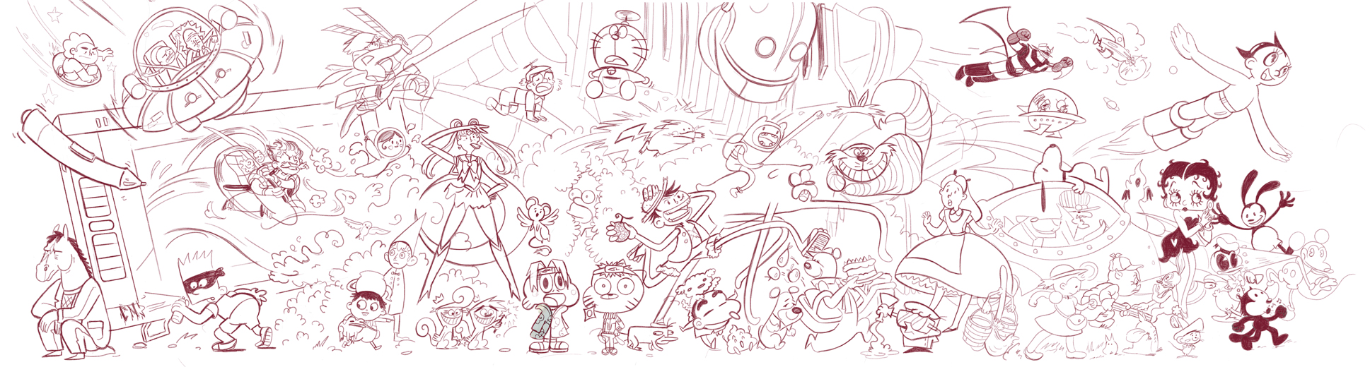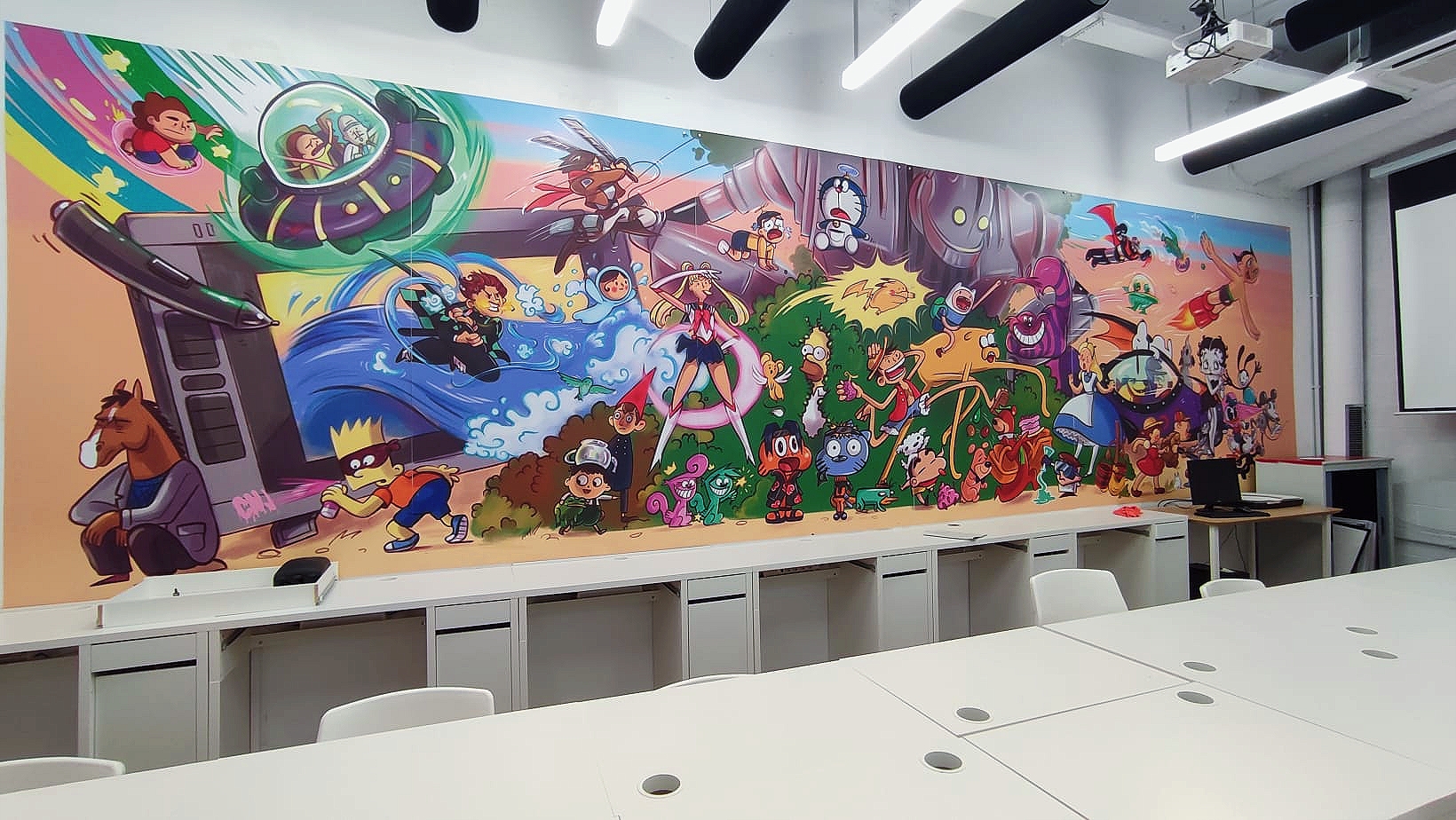 Illustration for 2D animation class´s wall at the Film school of Barcelona ECIB.